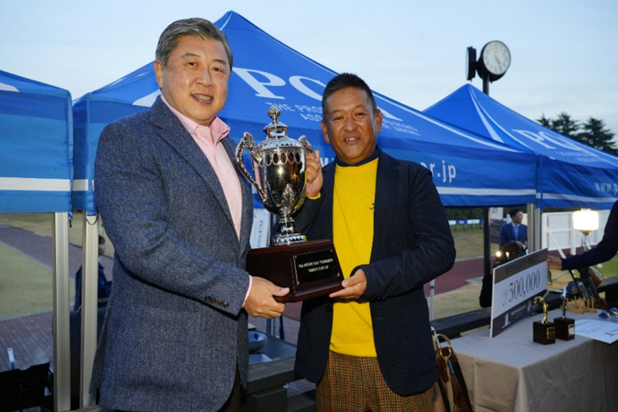 最終日の15番ホールの長いパーパットを沈め、続く16番ホールでもバーディーパットを沈め波に乗りプレーオフ5ホール集中力を途切れることなく、見事初の栄冠を手にすることができました。篠崎プロのデビューは1992年のANAオープン、初優勝がその思い出ツアーと相まって、あの“男泣き”につながったことと思います。この初優勝により篠崎プロは2年間のシード権を手に入れました。